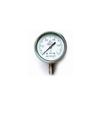 不銹鋼壓力表由導壓系統(包括接頭、彈簧管、限流螺釘等)、齒輪傳動機構、示數裝置(指針與度盤)和外殼(包括表殼、表蓋、表玻璃等)所組成。外殼為氣密型結構,能有效地保護內部機件免受環境影響和污穢侵入。對于在外殼內充液(一般為硅油或甘油)的儀表,能夠抗工作環境振動較劇和減少介質壓力的脈動影響。